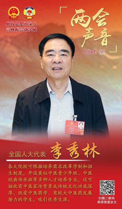 | 代表委員聲音丨李秀林:大力培養(yǎng)中醫(yī)藥“專才” 讓傳統(tǒng)國(guó)粹代代相傳 |